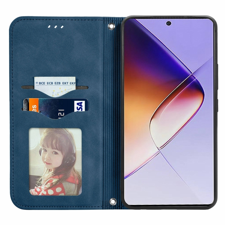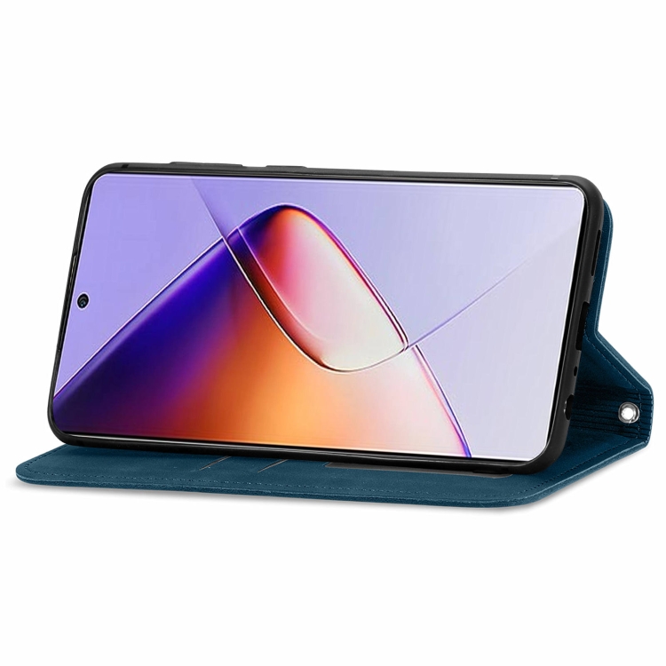 Funda de Teléfono Infinix Note 40 Cuero con Tapa Magnética y Sensación de Piel Retro (Azul)