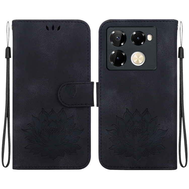 Funda de Cuero para Infinix Note 40 Pro 4G / 5G con Relieve de Loto (Negro)