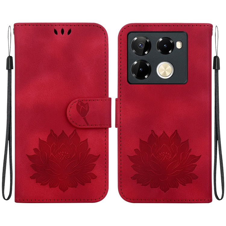 Funda de Cuero para Infinix Note 40 Pro 4G y 5G con Relieve de Loto (Rojo)