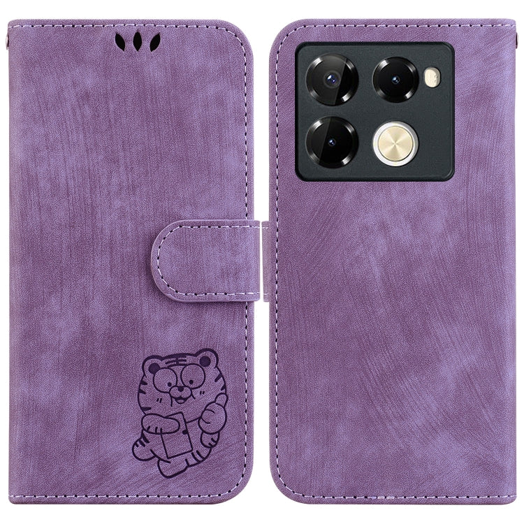 Funda de Cuero para Infinix Note 40 Pro 4G y 5G con Relieve Little Tiger (Púrpura)