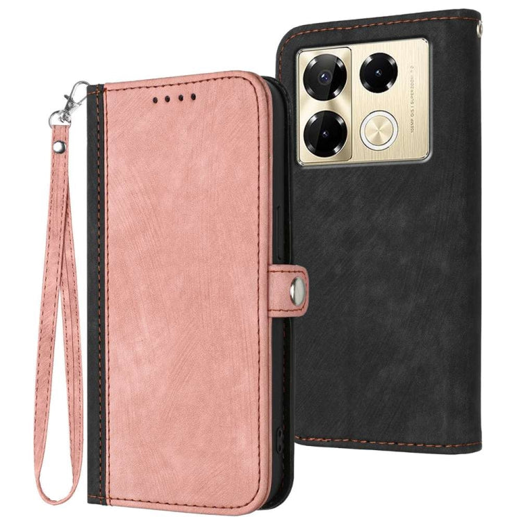 Funda de Cuero para Infinix Note 40 Pro 4G/5G con Correa de Mano, Doble Pliegue y Hebilla Lateral (Rosa)