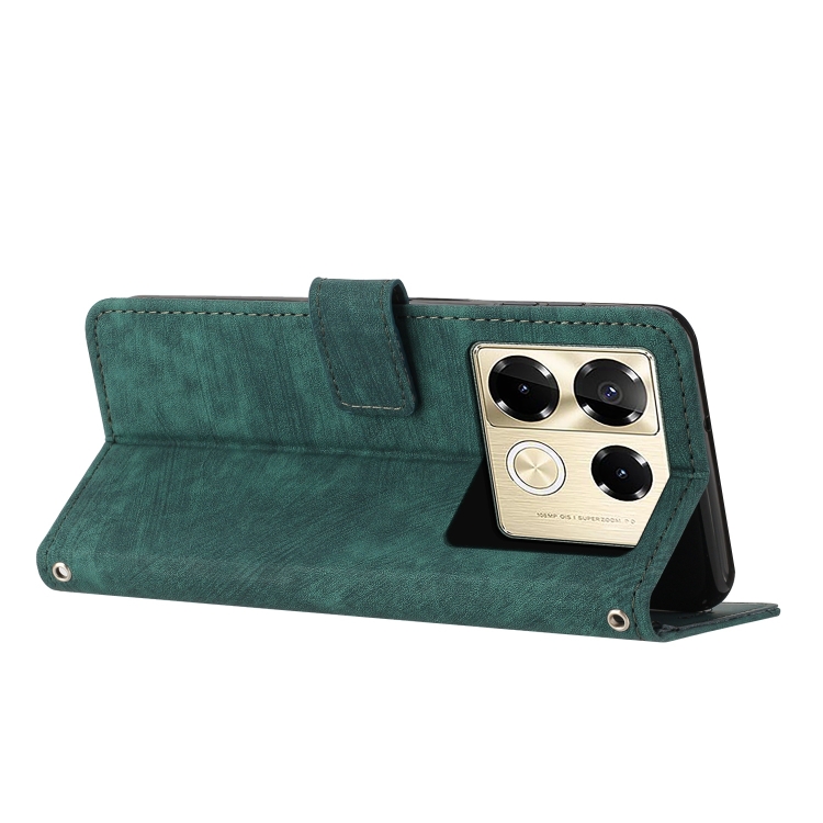 Funda de Cuero para Infinix Note 40 Pro 4G / 5G con Patrón de Rayas y Cordón (Verde)