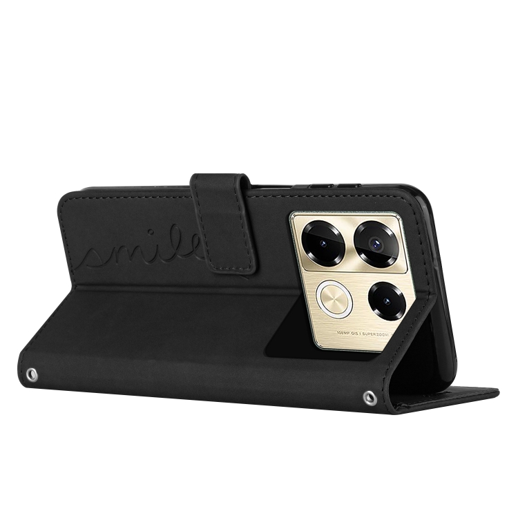 Funda para Infinix Note 40 Pro 4G/5G Skin Feel Corazón Cuero en Relieve con Cordón Largo (Negro)