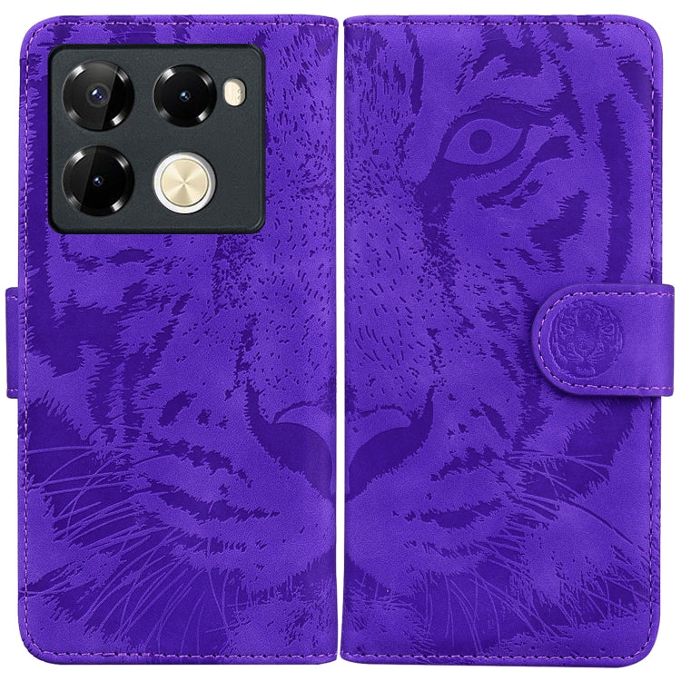 Funda de Cuero con Tapa para Infinix Note 40 Pro 4G/5G Tiger Embossed Pattern (Púrpura)