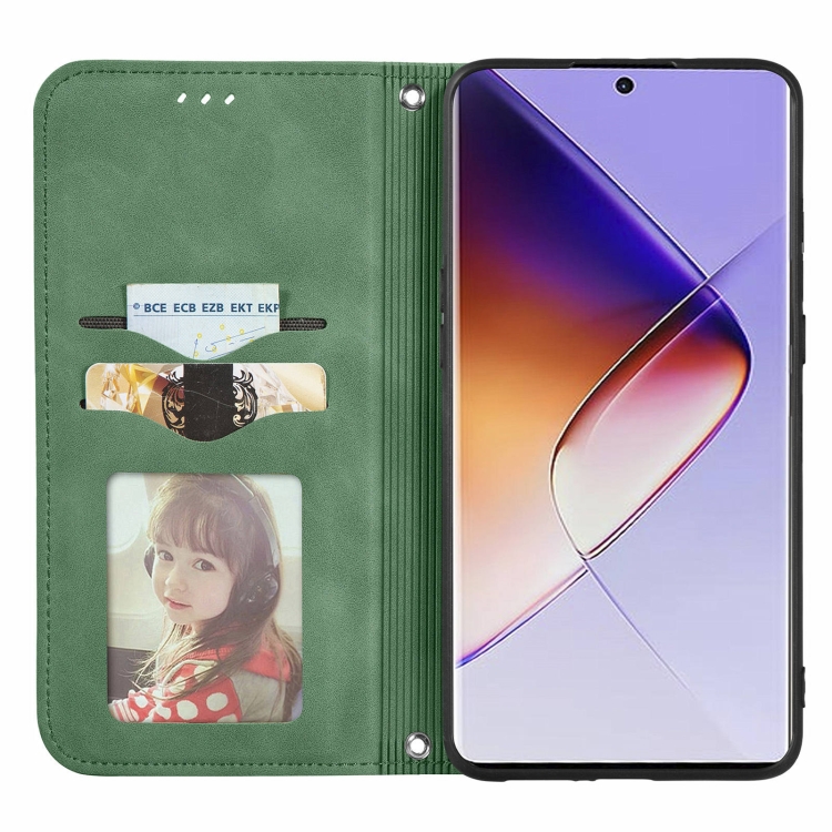 Funda de Cuero para Infinix Note 40 Pro 4G con Tapa Magnética y Piel Retro (Verde)