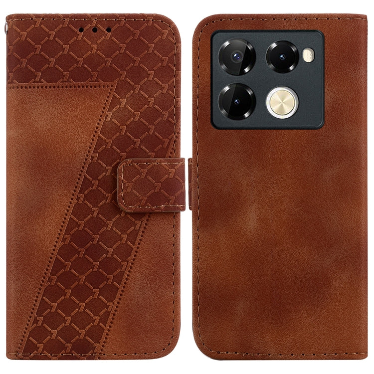 Funda de Cuero En Relieve para Infinix Note 40 Pro + 5G con Siete Formas (Marrón)