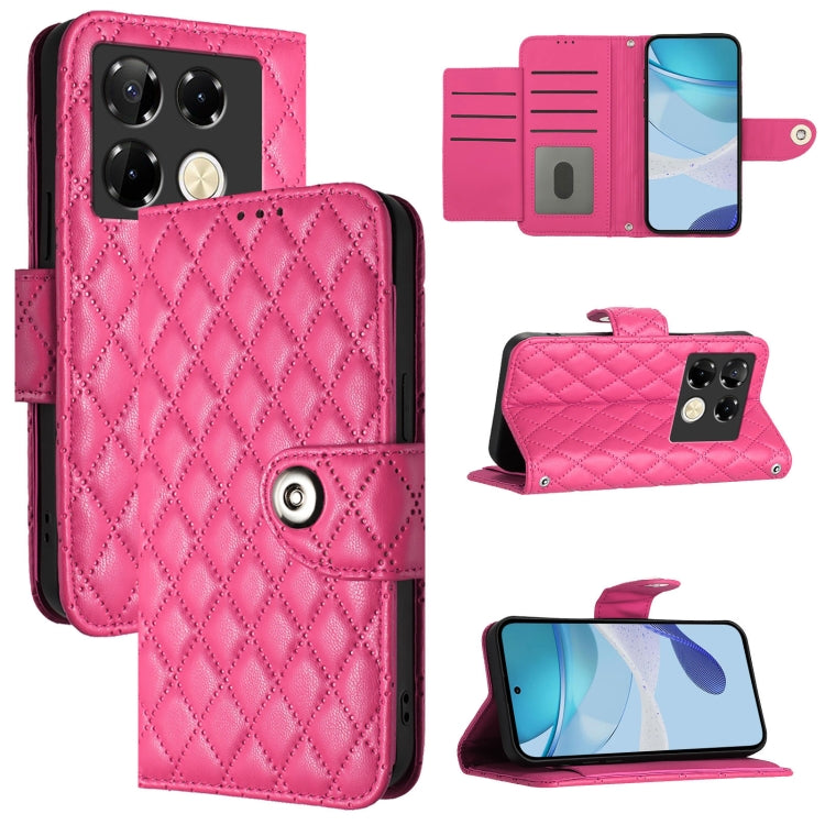 Funda para Infinix Note 40 Pro 5G X6851 de Cuero con Tapa, Textura Romboidal y Cordón (Rojo Rosa)