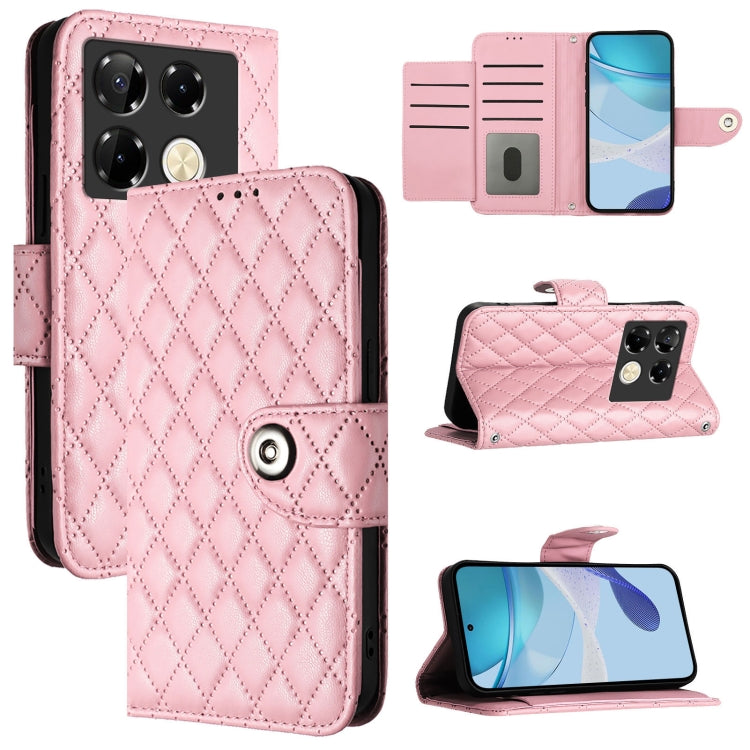 Funda para Infinix Note 40 Pro 5G X6851 de Cuero con Tapa, Textura Romboidal y Cordón (Rosa)