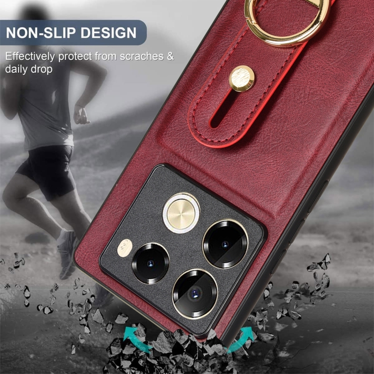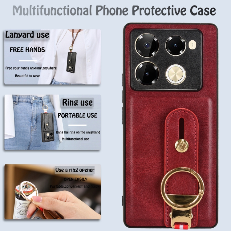 Funda Trasera de Cuero para Infinix Note 40 Pro 5G X6851 con Pulsera (Rojo)