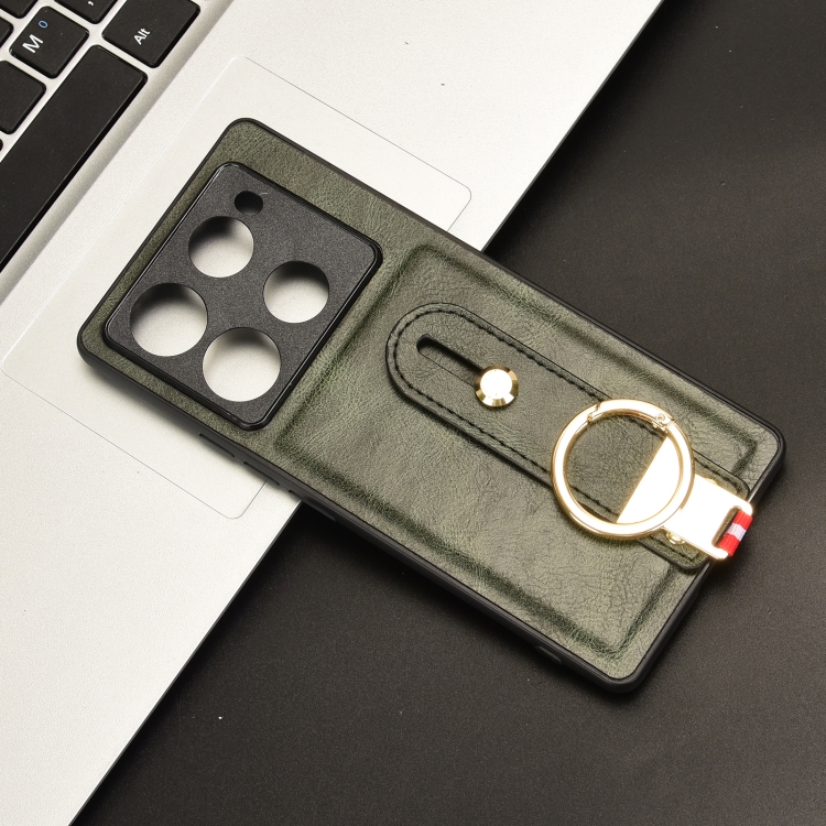 Funda Trasera de Cuero para Infinix Note 40 Pro 5G X6851 con Pulsera (Verde)