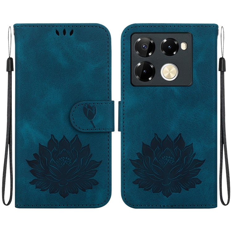 Funda de Cuero con Relieve de Loto para Infinix Note 40 Pro (Azul Oscuro)