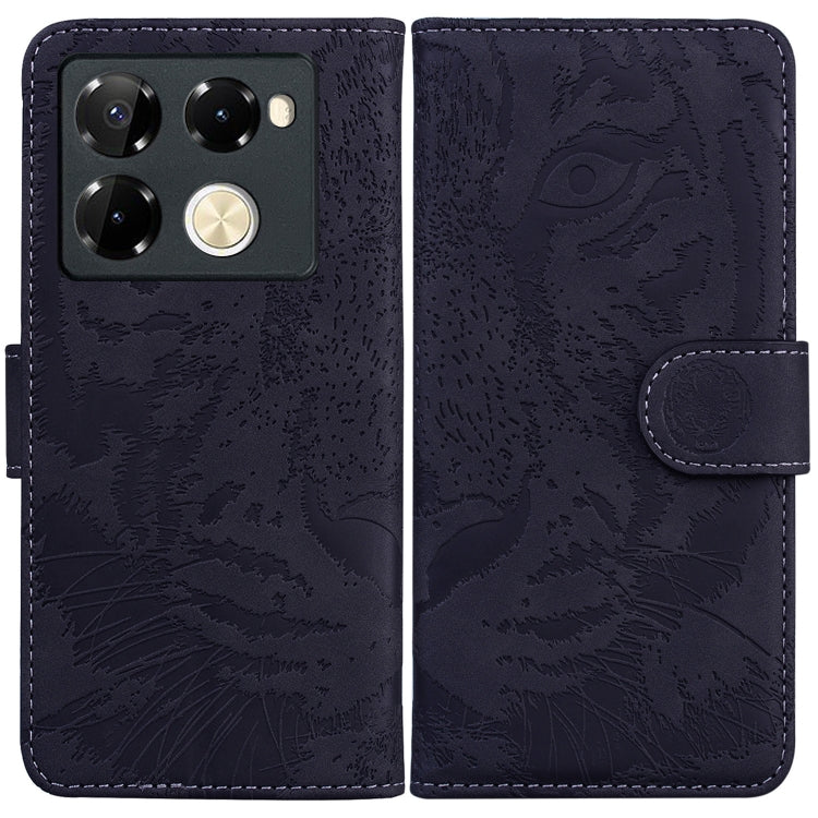 Funda para Infinix Note 40 Pro de Cuero con Tapa y Patrón en Relieve de Tigre (Negro)
