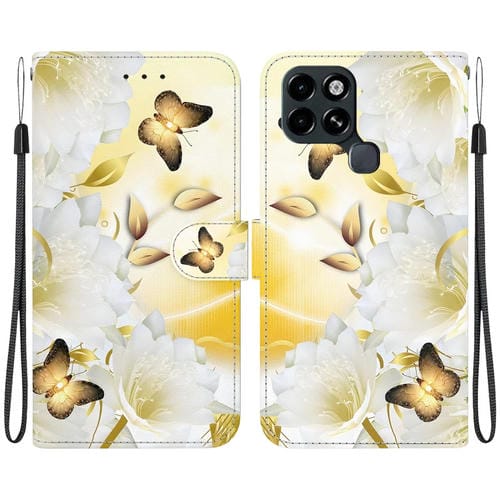 Funda de Cuero para Infinix Smart 6 con Dibujo Epiphyllum y Mariposa Dorada (Textura Cristal)