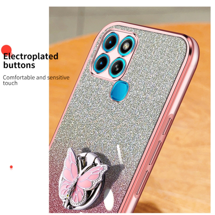 Funda TPU para Infinix Smart 6 con Soporte Mariposa y Brillo Degradado (Azul Sierra)