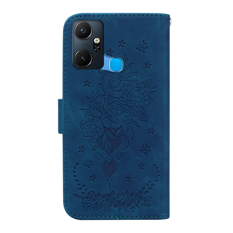 Estuche de Cuero En Relieve Butterfly Rose para Infinix Smart 6 Plus (Azul)