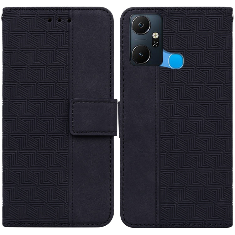 Estuche para Infinix Smart 6 Plus de Cuero con Tapa en Relieve Geométrico (Negro)