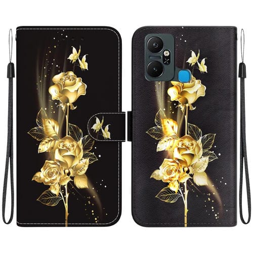 Funda de Cuero para Infinix Smart 6 Plus con Dibujo Coloreado y Textura de Cristal (Mariposa Dorada Rosa)