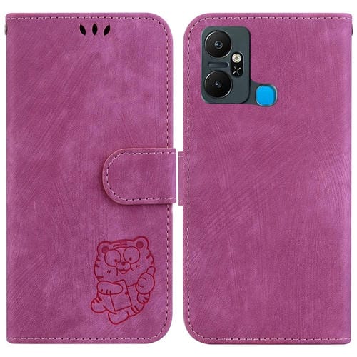 Funda de Cuero para Infinix Smart 6 Plus con Relieve Little Tiger (Rojo Rosa)