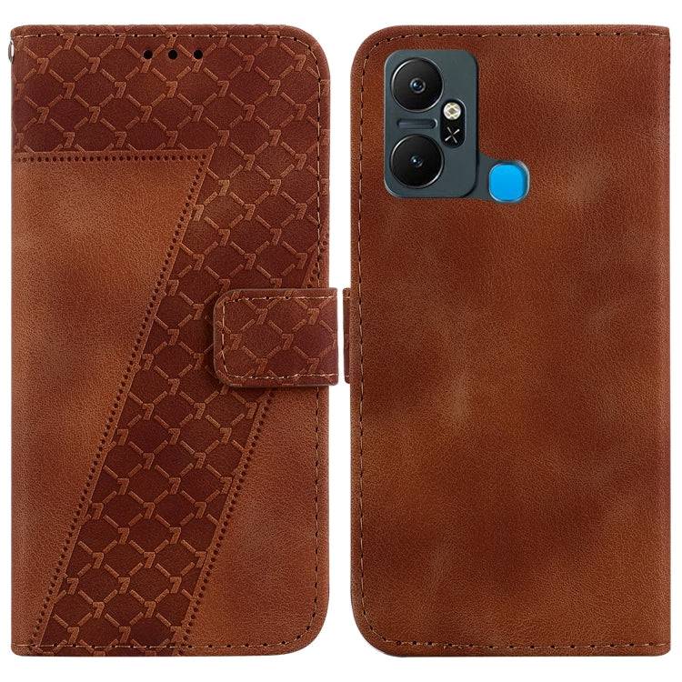 Funda de Cuero En Relieve para Infinix Smart 6 Plus en Forma de 7 (Marrón)