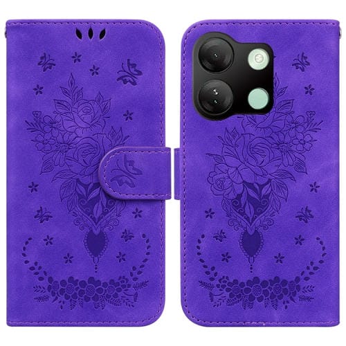 Funda de Cuero para Infinix Smart 7 HD Butterfly Rose en Relieve (Púrpura)