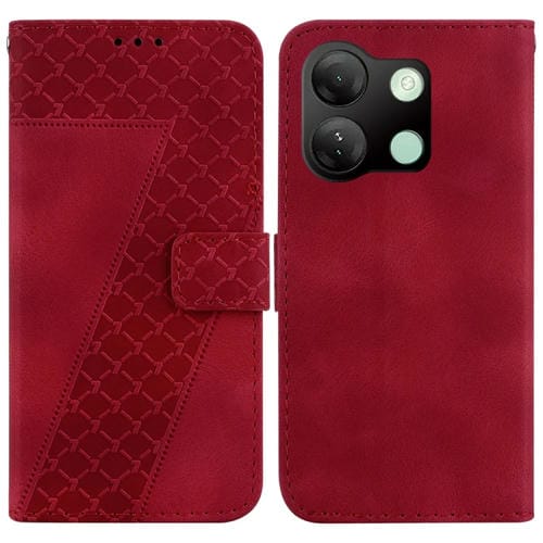 Funda de Cuero En Relieve para Infinix Smart 7 HD con Forma de 7 (Rojo)