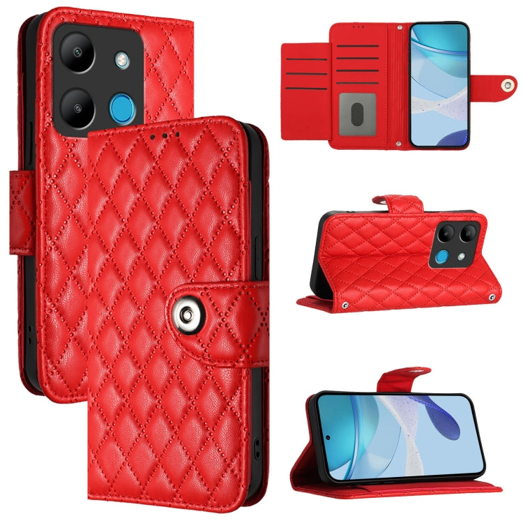 Funda para Infinix Smart 7 India con Tapa de Cuero Textura Rómbica y Cordón (Rojo)