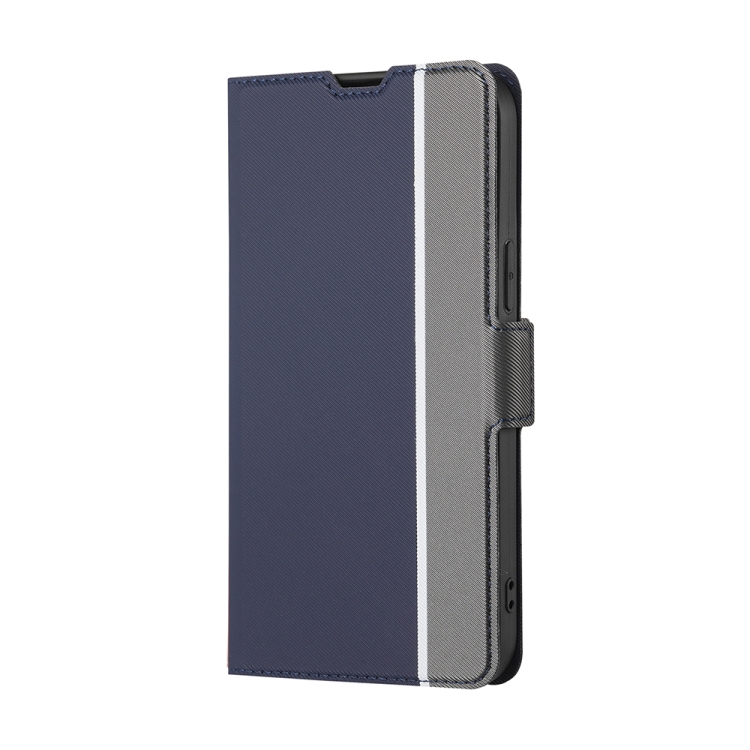 Funda de Cuero para Infinix Smart 7 con Textura Twill y Hebilla Lateral (Azul)