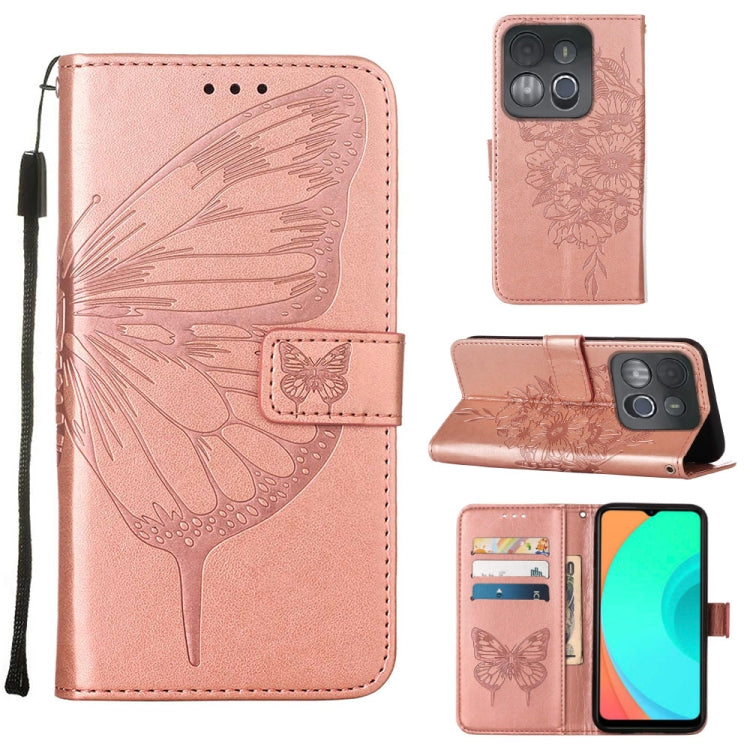 Estuche para Infinix Smart 7 X6515 de Cuero con Tapa de Mariposa en Relieve (Oro Rosa)