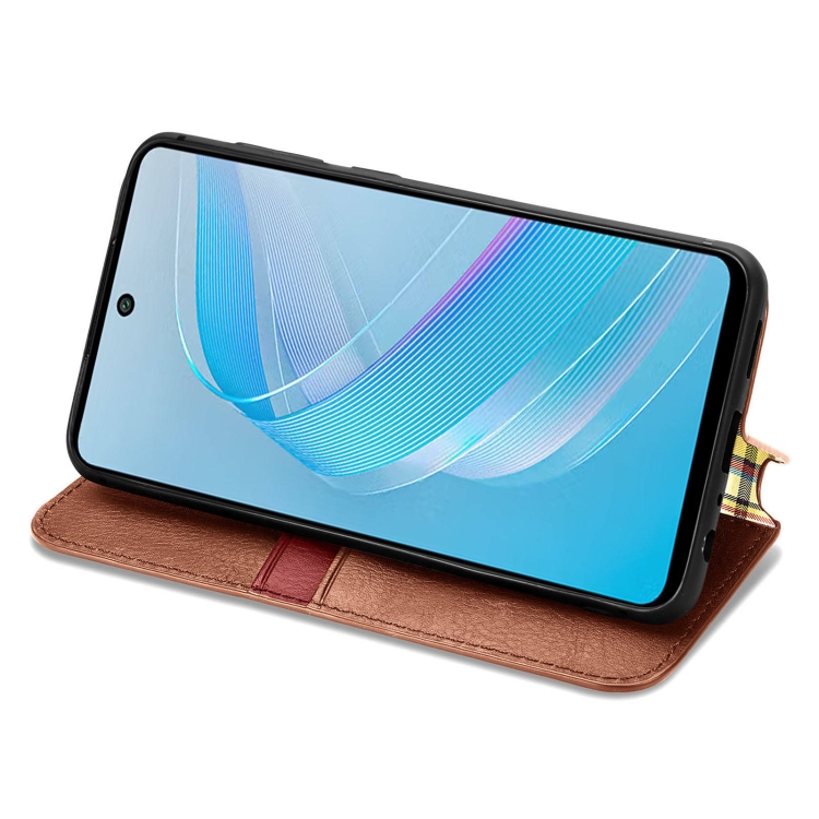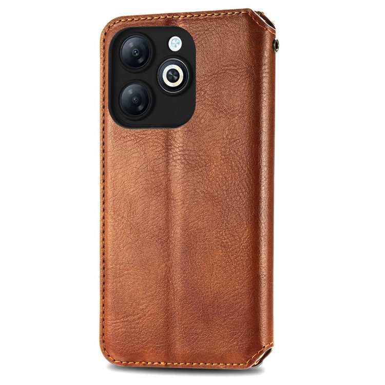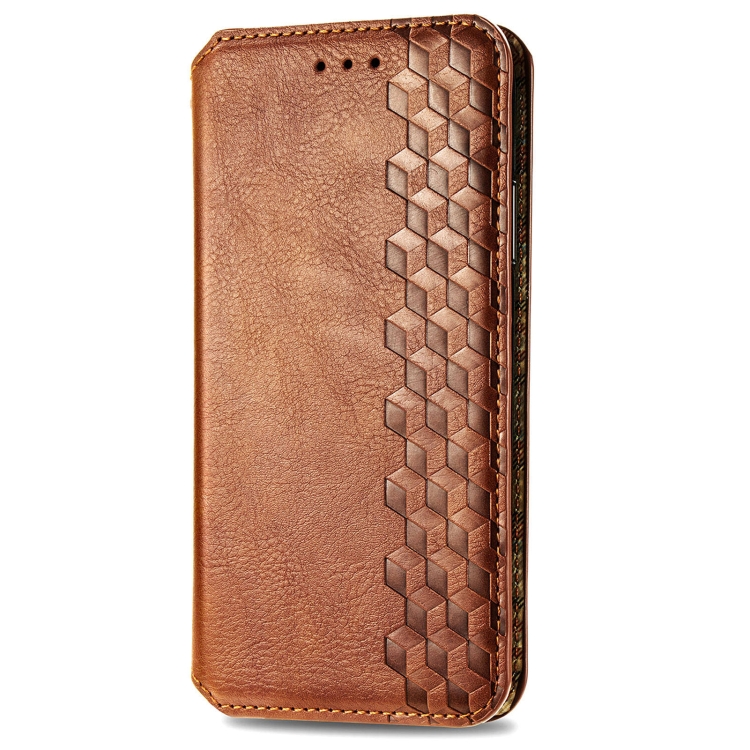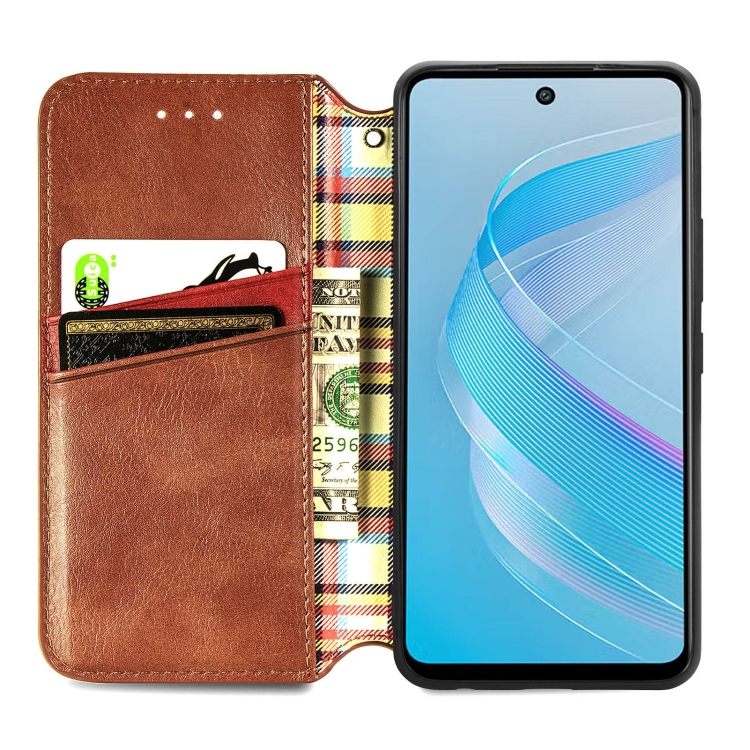 Funda de Cuero Magnético Prensado Cubic Grid para Infinix Smart 8 (Marrón)