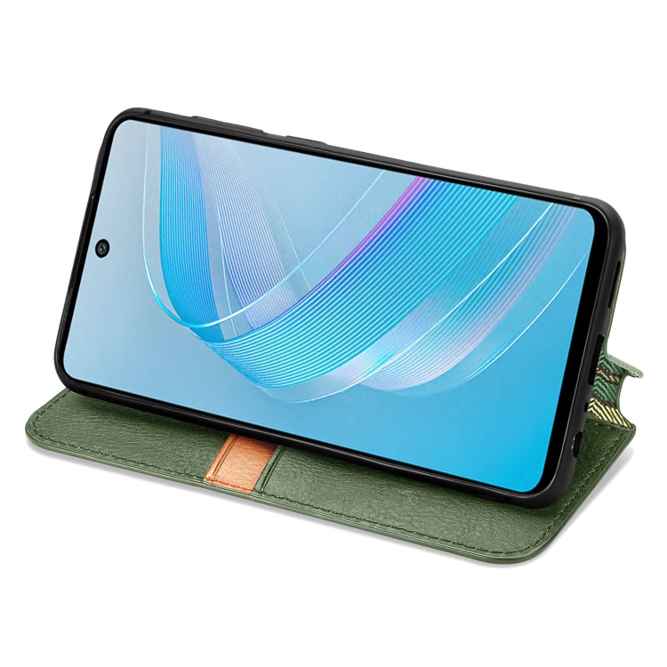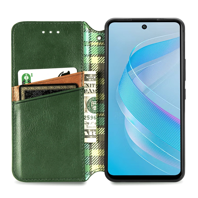 Funda de Cuero Magnético Prensado para Infinix Smart 8 Cubic Grid (Verde)