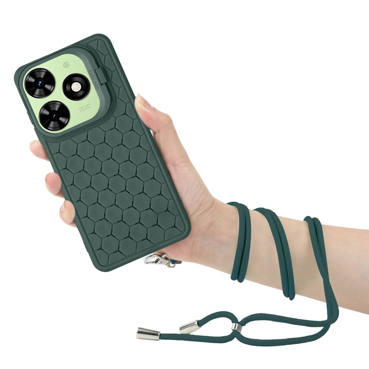 Funda para Infinix Smart 8 Honeycomb Radiating Holder de TPU con Cordón (Verde)