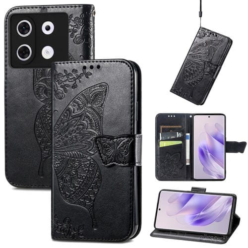 Funda de Cuero para Infinix Zero 30 4G Butterfly Love Flower en Relieve (Negro)