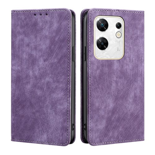 Funda de Cuero Magnética para Infinix Zero 30 4G con Rfid y Cepillo Antirrobo (Púrpura)