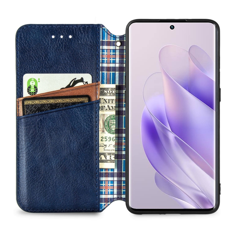 Funda de Cuero Magnético Prensado Cubic Grid para Infinix Zero 30 5G (Azul)