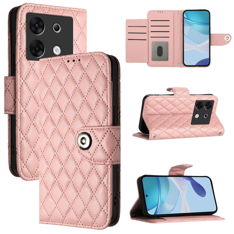 Funda de Cuero para Infinix Zero 30 5G con Tapa, Textura Romboidal y Cordón (Rosa Coral)