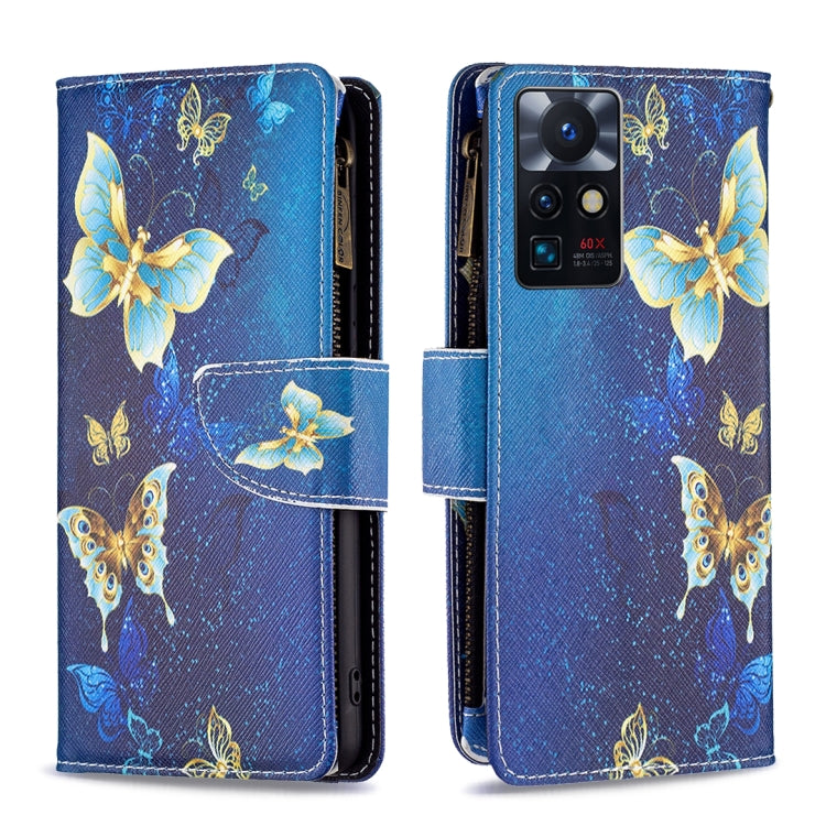 Para Infinix Zero X Neo Colored Drawing Patrón de dibujo cremallera Horizontal Flip Phone de cuero (mariposa dorada)