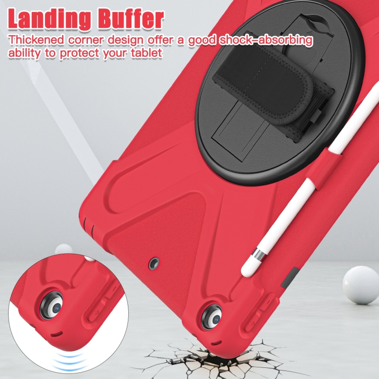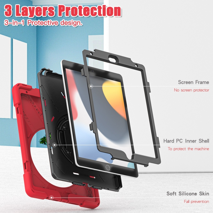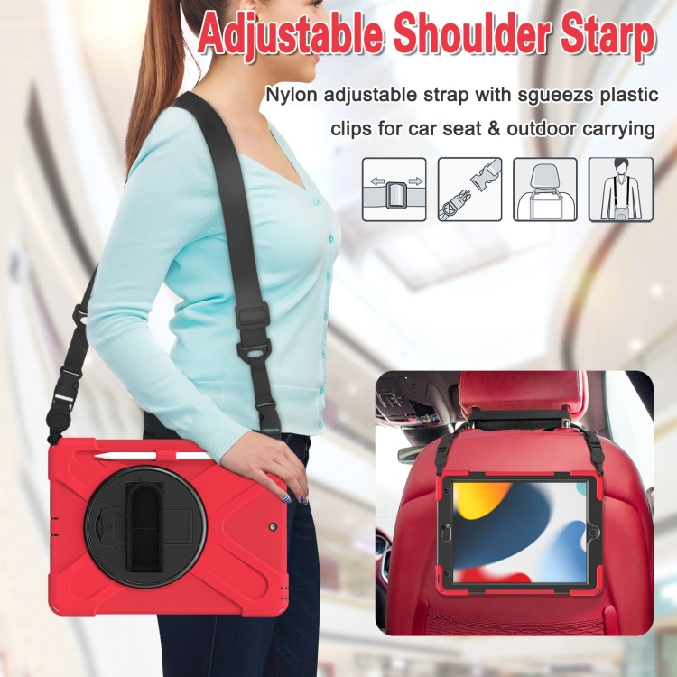 Funda Protectora para iPad 10.2 2021/2020/2019 Silicona + PC con Soporte y Correa (Rojo)