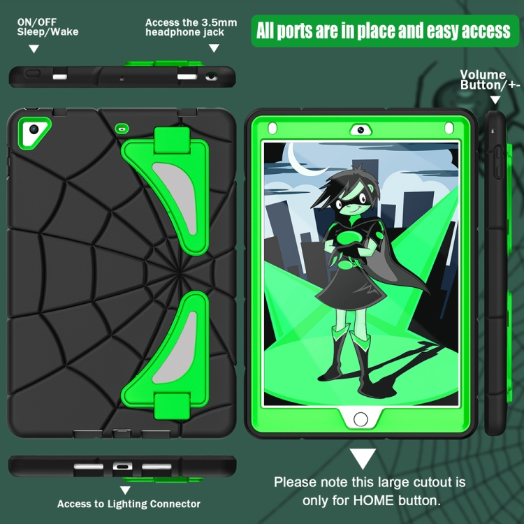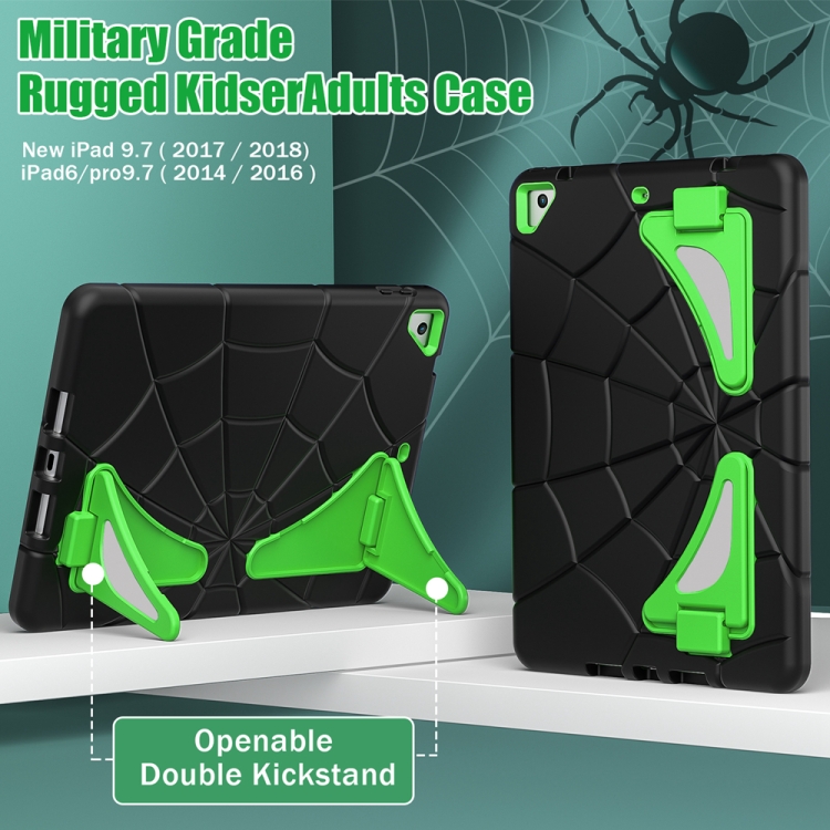 Funda Protectora para Tableta iPad 9.7 2018 2017 Air 2 Silicone + PC a Prueba de Golpes (Negro + Verde)