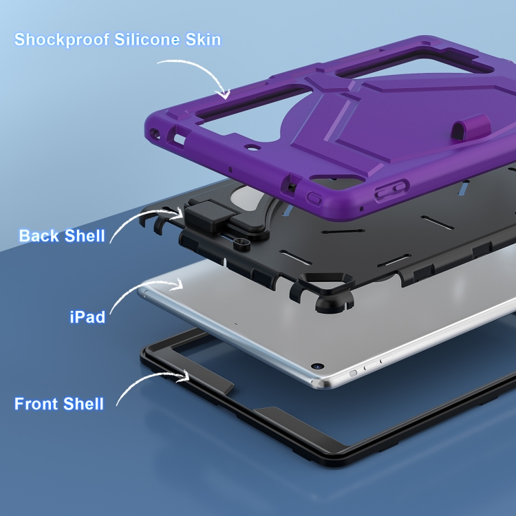 Funda Protectora para Tableta Apple iPad 9.7 2018/2017 Pro 9.7 2016 Air 2 Silicone + PC a Prueba de Golpes (Púrpura + Negro)