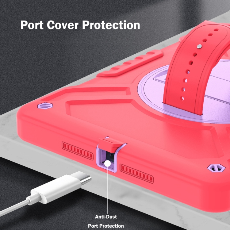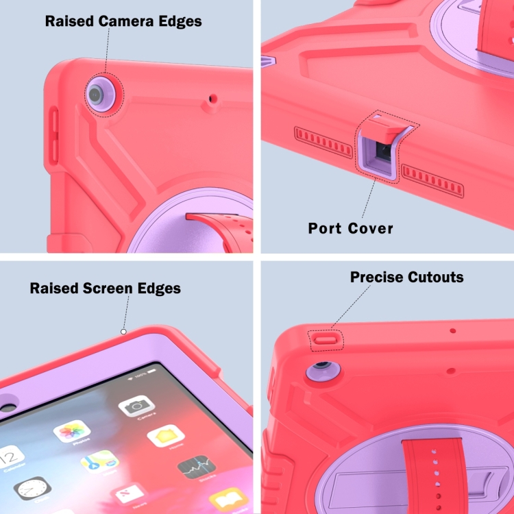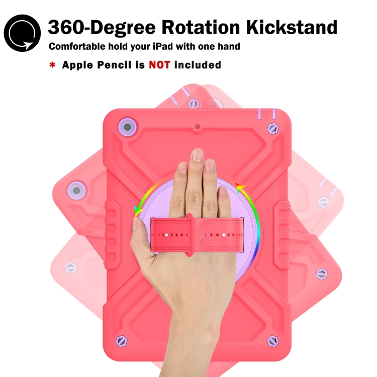 Funda para Tableta iPad Air Air 2 9.7 (2018 2017) Silicona Híbrida Rotación con Correa (Rojo Púrpura)