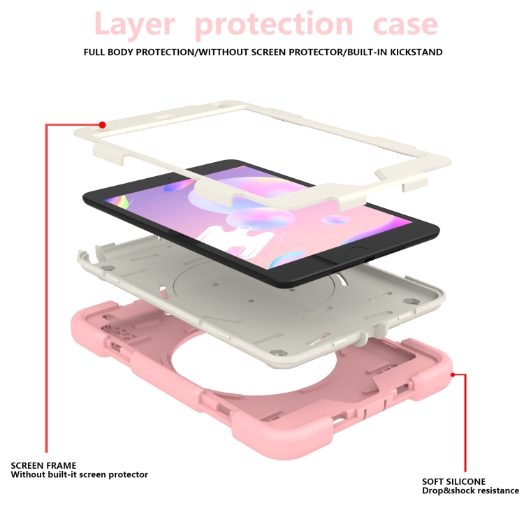 Funda para iPad Mini 4 2015 y Mini 2019 Silicone + PC con Soporte y Correa (Rosa)