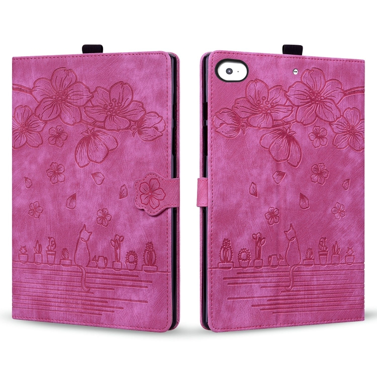 Funda para Tableta iPad Mini 5/4/3/2/1 Cuero Inteligente Relieve Gato Sakura (Rojo Rosa)