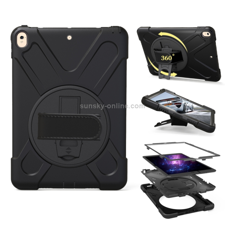 Funda para iPad Pro 10.5 Pulgadas con Rotación de 360 Grados PC y Silicona con Soporte y Correa de Mano (Negro)