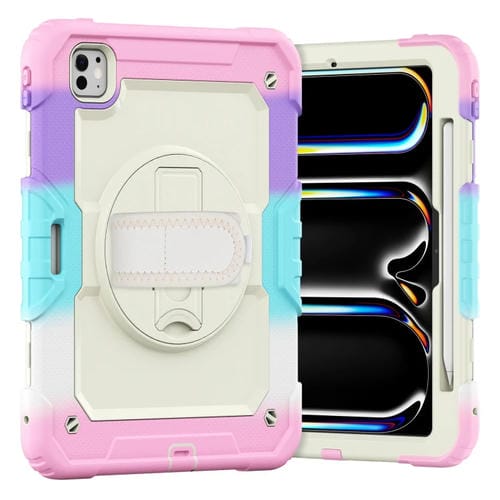 Funda híbrida de silicona para iPad Pro 11 (2024) con correa para el hombro (Rosa Camuflaje)