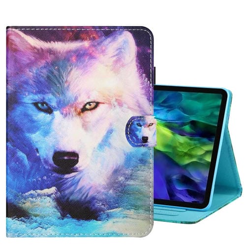Funda Cuero Inteligente iPad Pro 11 (2024) Dibujo a Color Costuras (Lobo)