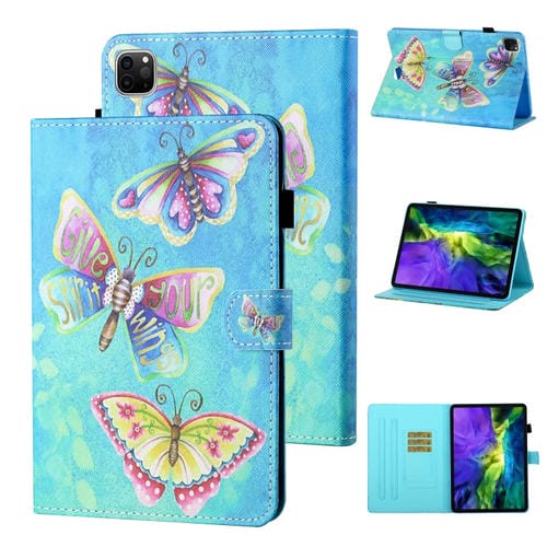 Funda de Cuero Inteligente para iPad Pro 11 (2024) con Costuras y Dibujos Mariposas de Colores