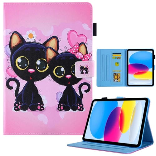 Funda de Cuero para iPad Pro 11 (2024) con Dibujo a Color Dos Gatos Negros