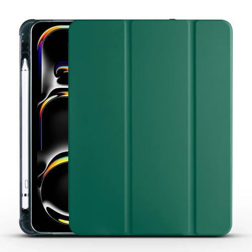Funda Inteligente de Cuero TPU 3 Pliegues para iPad Pro 11 (2024) con Ranura para Bolígrafo (Verde Pino)