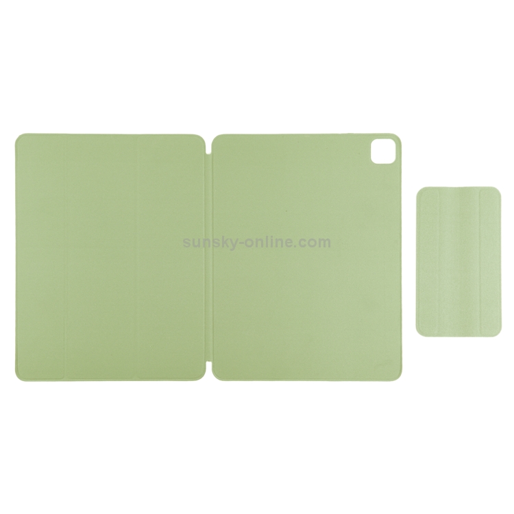 Funda para iPad Pro 12.9 (2020) Cuero PU Magnética Soporte Tres Plegables Suspensión (Verde Claro)