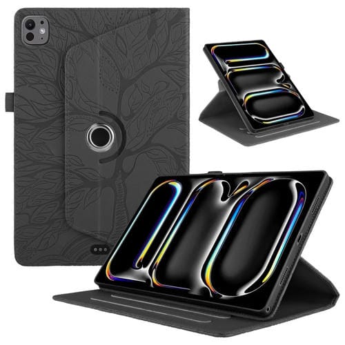 Funda para Tableta iPad Pro 13 Tree Life 2024 Cuero Rotación En Relieve (Negro)